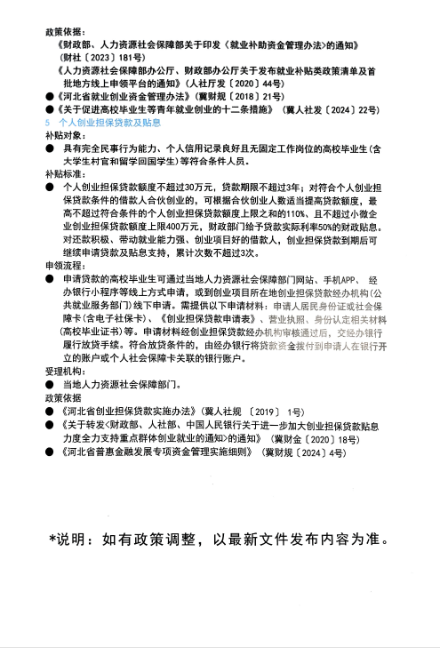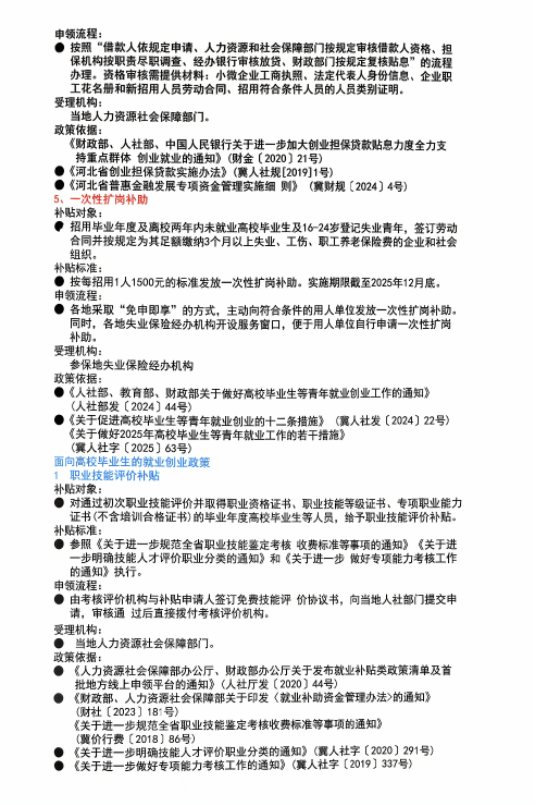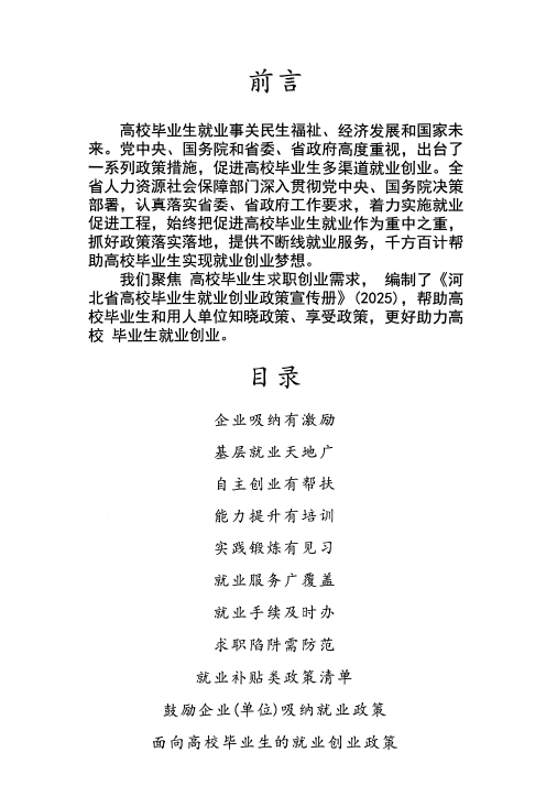 河北省高校毕业生就业创业政策宣传册(2025)