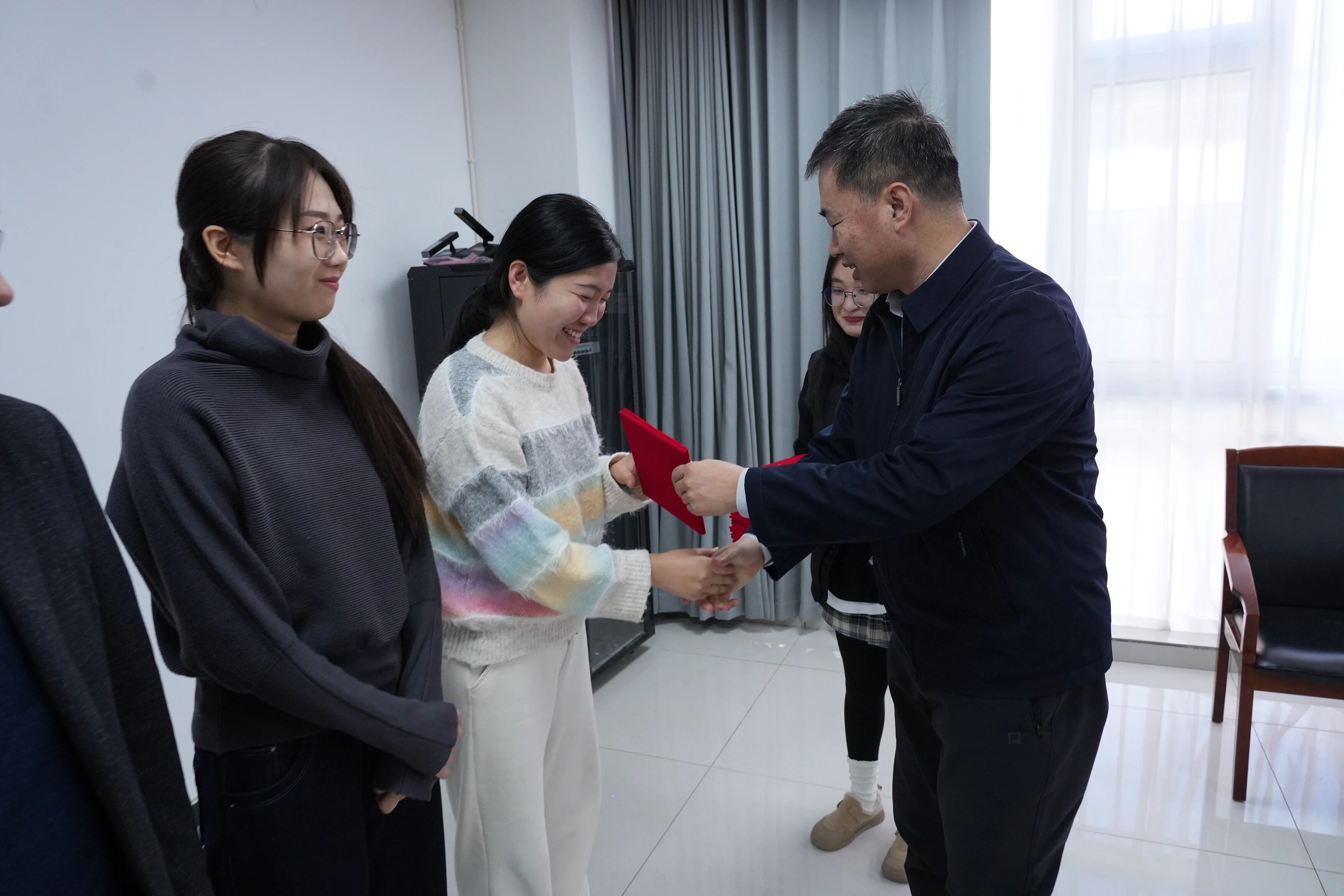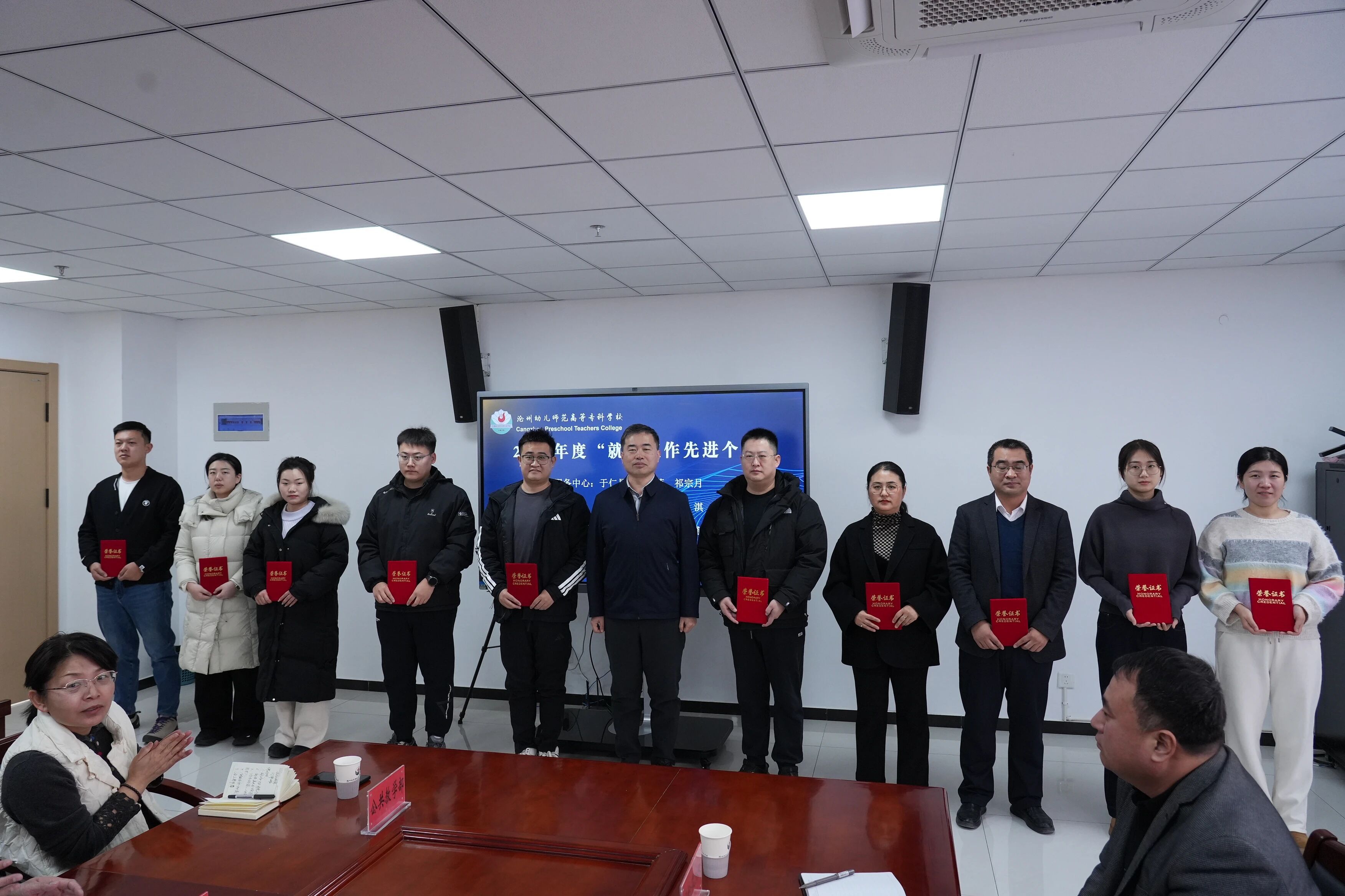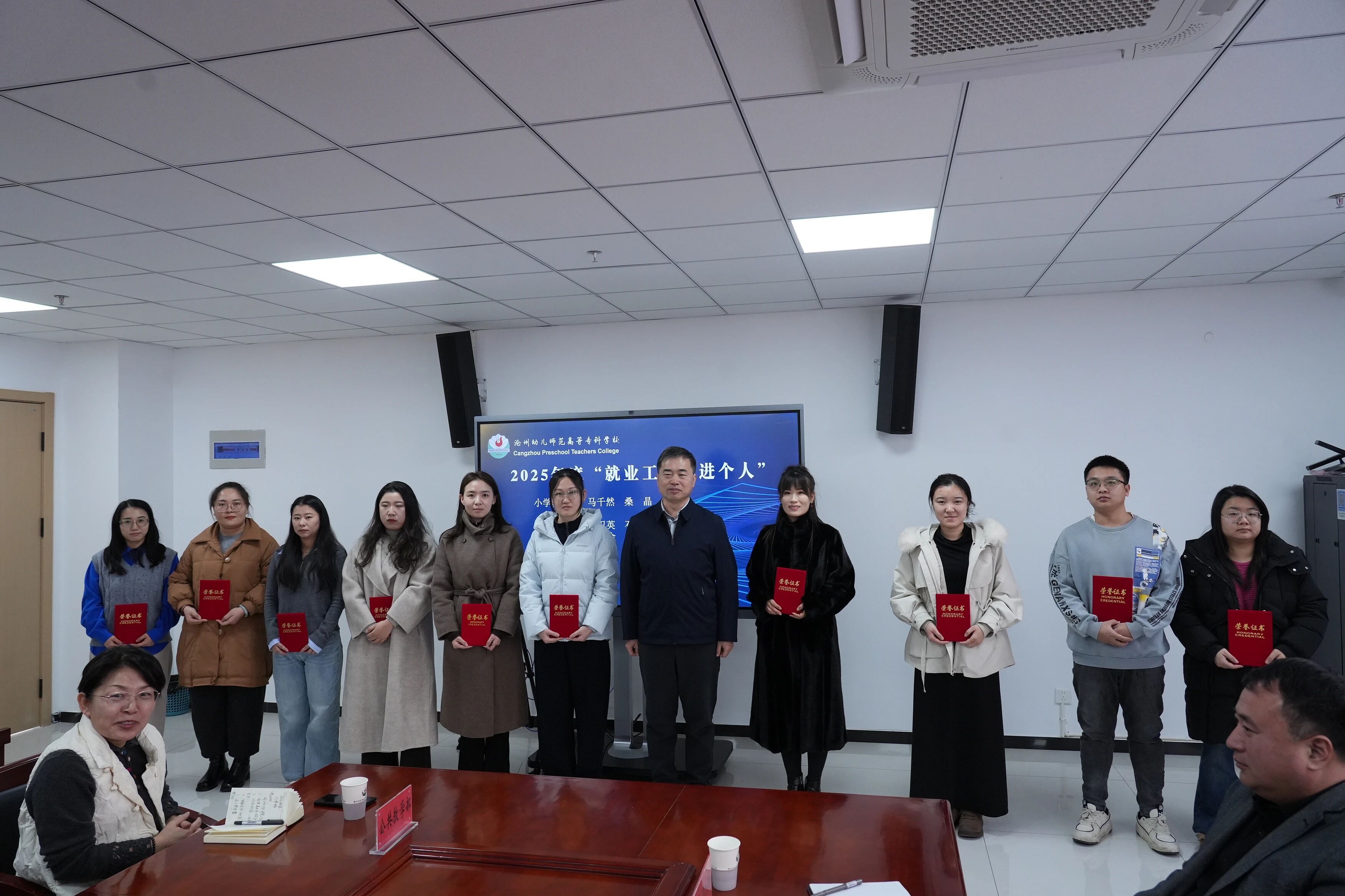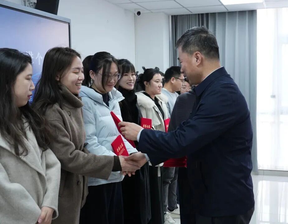 表彰环节中,桑金歌为2025年度“就业工作先进个人”颁发荣誉证书,对获奖人员在就业工作中展现的责任担当、务实作风与突出业绩给予充分肯定。他希望受表彰人员珍惜荣誉、再接再厉,充分发挥榜样示范引领作用,带动全校就业工作者提质增效;同时鼓励全体参会人员以先进为标杆,聚焦工作重点、补齐短板弱项,全力做好毕业生就业创业服务工作。